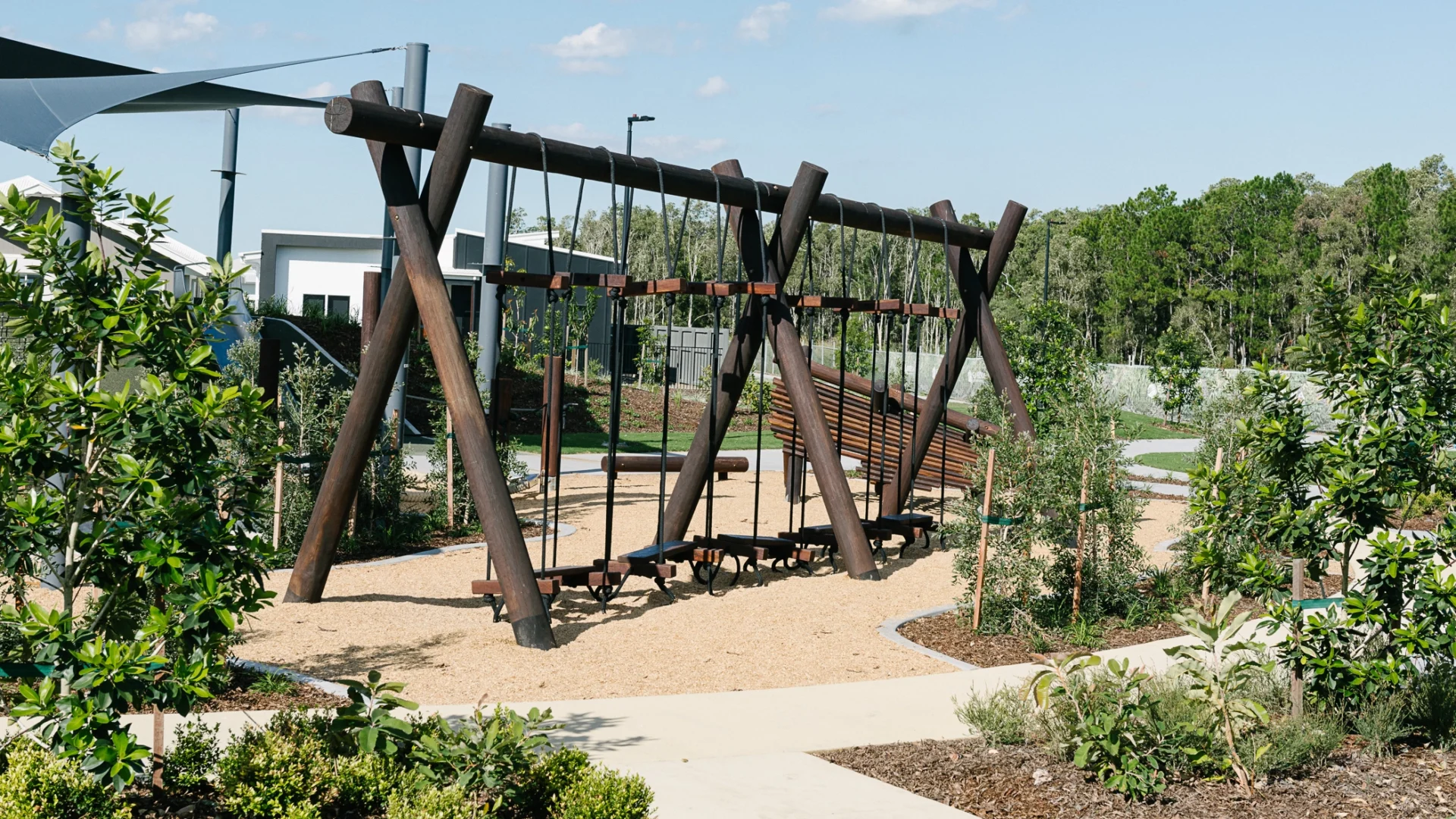 With its lush, bushland backdrop and landscaped to include plenty of leafy greenery, Burnet Circuit Park offers a really natural, organic vibe. There’s plenty of natural shade and undercover sails, as well as benches, tables and seating areas scattered around, so it’s easy to enjoy hours of play at this fantastic park.